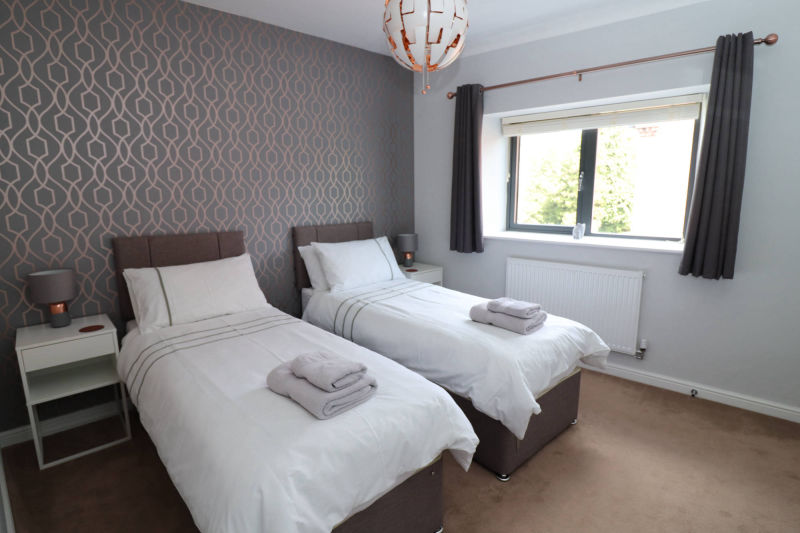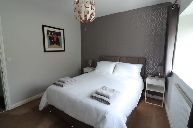 Choice of Kingsize bed or Twin Single beds. Built in wardrobe and bedside tables. Blackout curtains in both bedrooms.