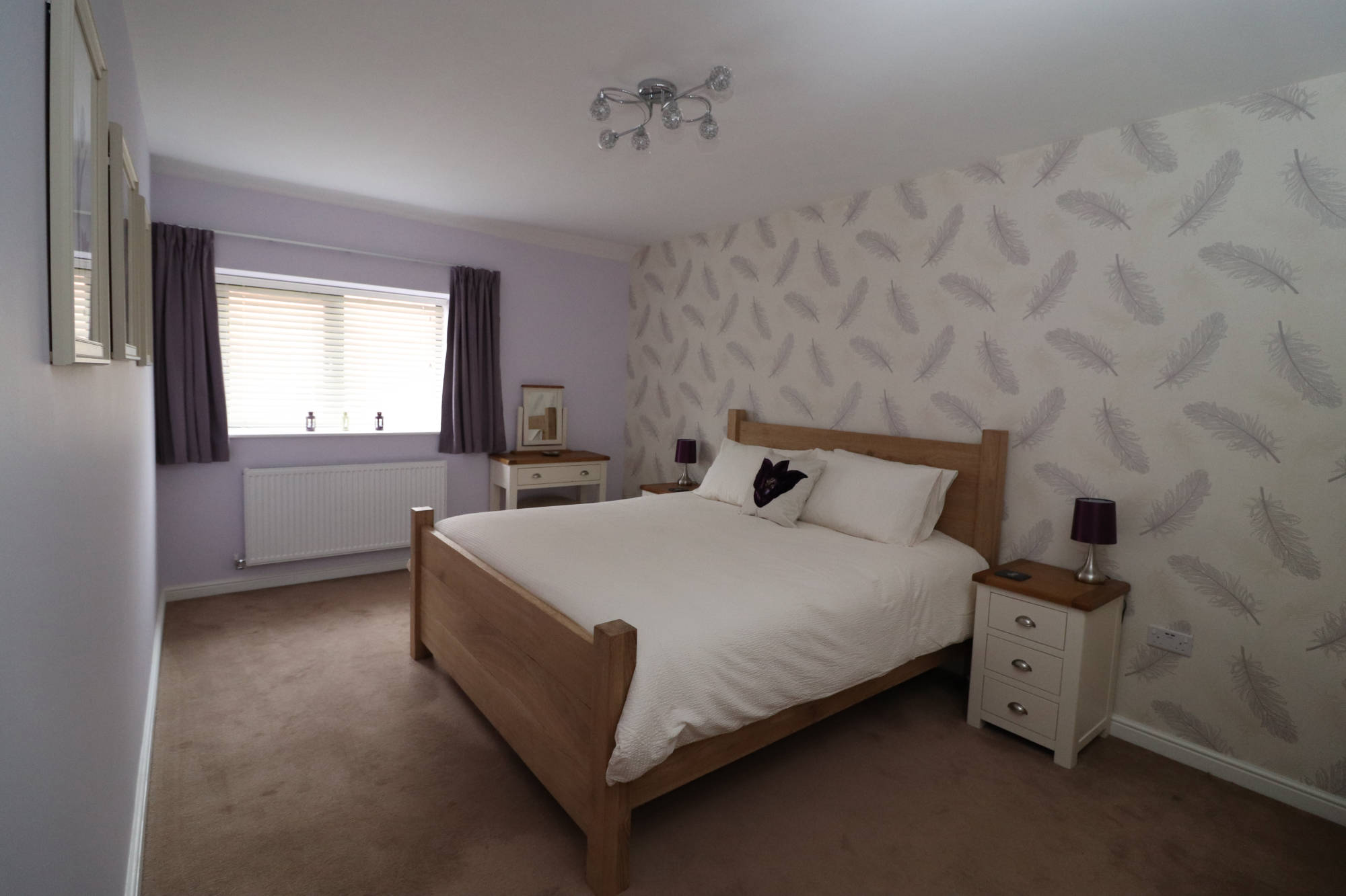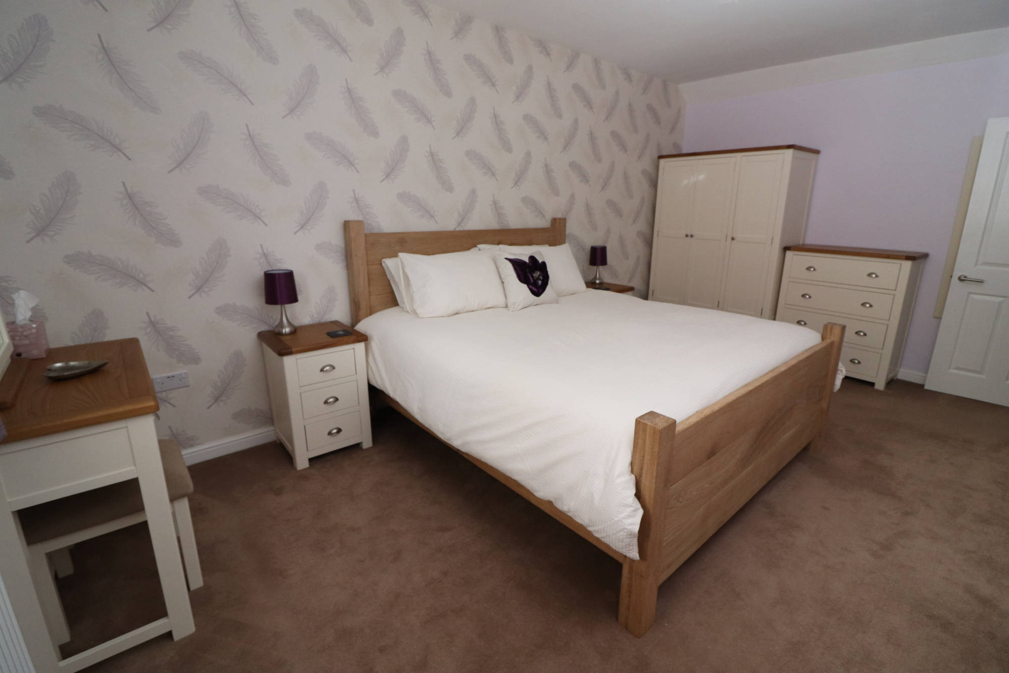 Large Master Bedroom with Solid Oak Super Kingsize bed with Hypnos mattress. Triple wardrobe, drawers, bedside tables and dressing table.